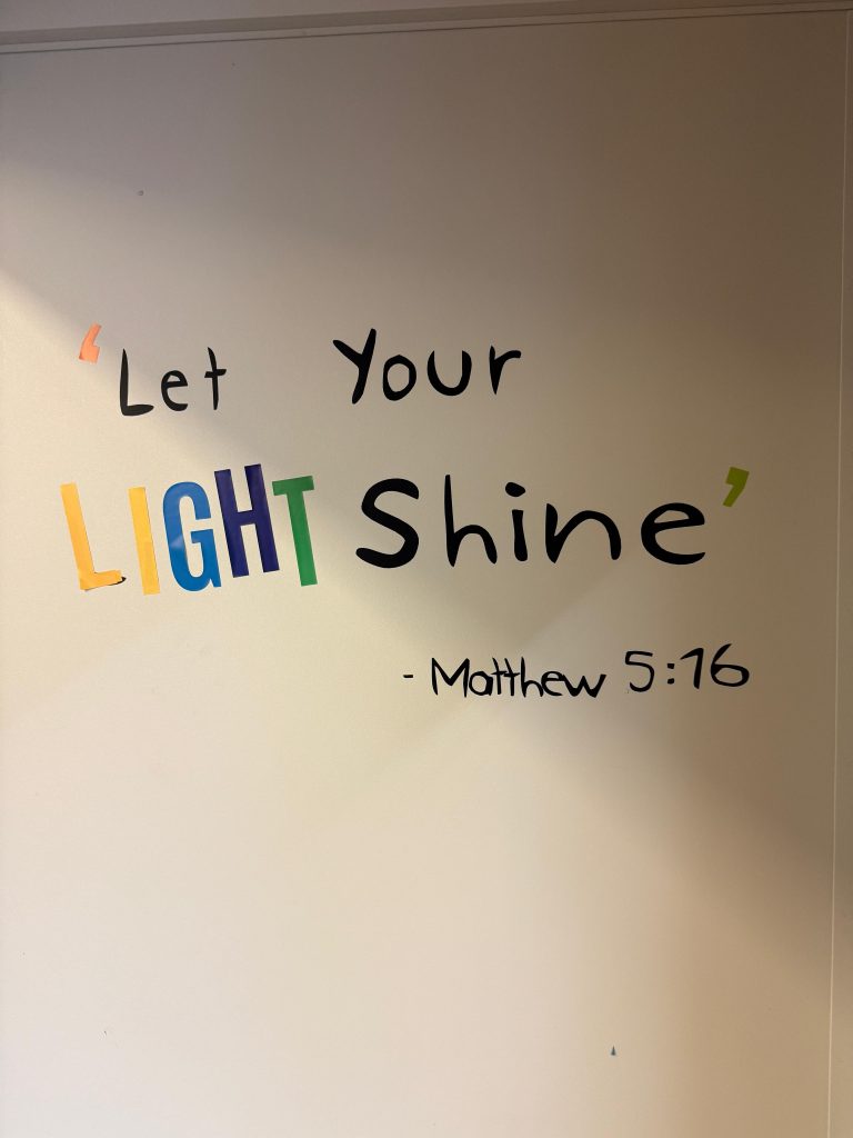 Rond negen uur worden we opgehaald door Kyle, de headmaster. Terwijl we het terrein oplopen, valt de stilte op: open zichtlijnen, veel licht, en de vanzelfsprekende mogelijkheid om zo naar buiten te stappen. De ontvangst is eenvoudig met oploskoffie en thee, maar meteen persoonlijk. Kyle’s rondleiding begint niet met cijfers, maar met ruimte.
